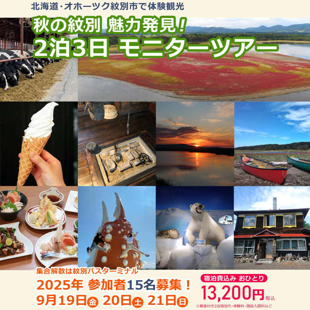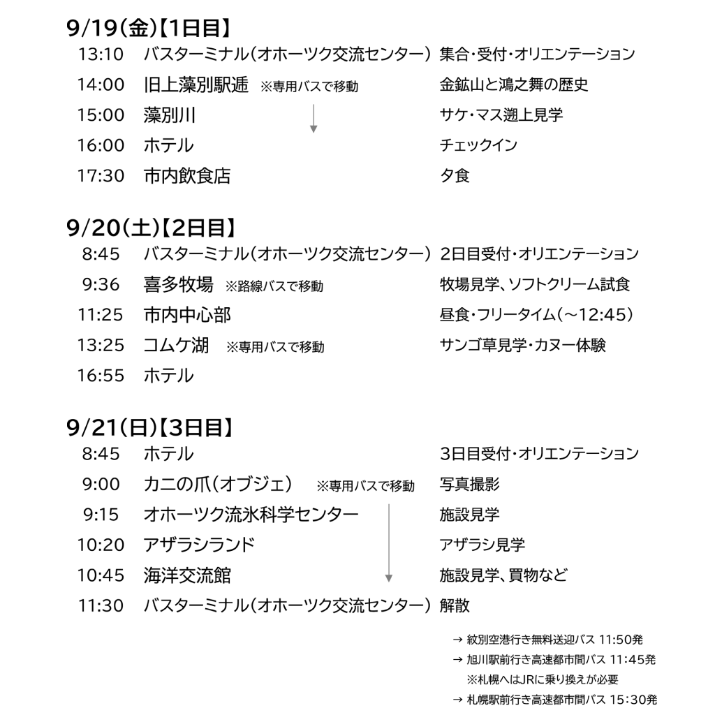 ※紋別市までの往復旅費交通費は手配含め各自負担となります。
