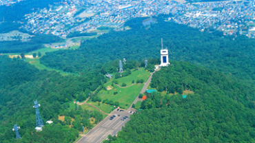 車で気軽に登ることができ、展望台や遊歩道からは市街地やオホーツク海の大パノラマが広がります。
